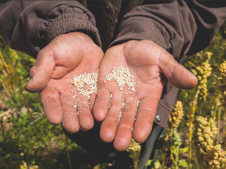 De teelt van quinoa begint met een zorgvuldige voorbereiding van de bodem. De grond wordt losgemaakt, geëgaliseerd en voorzien van natuurlijke bemesting, zodat de zaden optimaal kunnen kiemen.